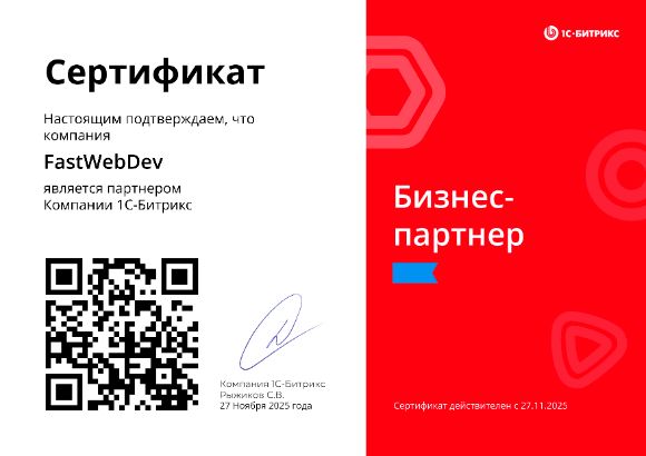 Партнер 1С-Битрикс с 2012 года. Сертифицированный специалист.